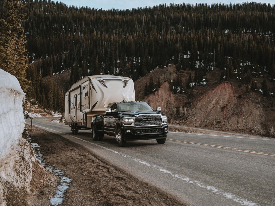 The 2026 Ram 3500 offers two powerful engine options designed to meet your specific work needs. The legendary 6.7-liter Cummins® Turbo Diesel engine generates an impressive 430 horsepower and 1,075 pound-feet of best-in-class diesel torque. Shop for Ram diesel trucks near Frostburg, MD, and benefit from enhanced capability ratings. Ram 3500 trucks powered by the 6.4-liter HEMI® V8 gasoline engine deliver 405 horsepower and 429 pound-feet of torque. When properly equipped with the diesel engine, the new Ram 3500 achieves a maximum towing capacity of 36,610 pounds, making the diesel truck ideal for contractors from Frostburg who need to transport heavy machinery and materials. Moving materials around Accident, MD, is easy for the new Ram 3500, which boasts a maximum gas payload rating of 7,590 pounds. Available in both rear-wheel drive and part-time four-wheel drive configurations, the new Ram 3500 ensures you maintain traction and control in any weather conditions Western Maryland throws your way.