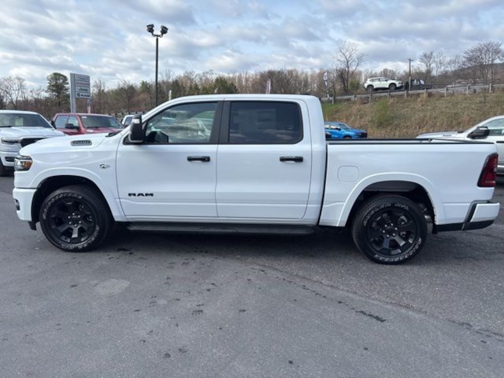 **Maryland State Inspected**, 115V Auxiliary Power Outlet, 115V Auxiliary Rear Power Outlet, 12" Touchscreen Display, 2nd Row in Floor Storage Bins, 3 Rear Seat Head Restraints, 4 Way Front Headrests, 400W Inverter, 4G LTE Wi-Fi Hot Spot, 9 Amplified Speakers with Subwoofer, Accent Color Door Handles, Accent Color Premium Power Mirrors, Accent Color Tailgate Handle, Air Conditioning ATC with Dual Zone Control, Anti-Spin Differential Rear Axle, Apple CarPlay, Auto Power-Folding Mirrors, Auto-Dimming Exterior Driver Mirror, Auto-Dimming Rear-View Mirror, Big Horn Level 2 Equipment Group, Black Exterior Mirrors, Black Exterior Truck Badging, Black Headlamp Bezels, Black Interior Accents, Black Painted Exterior Mirrors Caps, Black Premium Power Mirrors, Black Tail Lamp Bezels, Body Color Fender Flares, Body Color Front Bumper, Body Color Rear Bumper with Step Pads, Bucket Seats, Center Console Parts Module, Cluster 7.0" TFT Color Display, Configurable Drive Mode, Connected Travel and Traffic Services, Connectivity - US/Canada, Convex Wide-Angle Exterior Mirror Insert, Deluxe Cloth Bucket Seats, Disassociated Touchscreen Display, Dual Exhaust with Black Tips, Exterior Mirrors Courtesy Lamps, Exterior Mirrors with Heating Element, Exterior Mirrors with Supplemental Signals, Front Seat Back Map Pockets, Full Length Floor Console, Global Telematics Box Module, Glove Box Lamp, Google Android Auto, GPS Antenna Input, GPS Navigation, Grille Black Surround Black Mesh, HD Radio, Heated Front Seats, Heated Steering Wheel, Integrated Center Stack Radio, Integrated Voice Command with Bluetooth, Leather Wrapped Steering Wheel, LED Dome Lamp with on/Off Switch, LED Footwell Lighting, Manual Adjust 4-Way Front Passenger Seat, Media Hub with 2 Charge Only USBs, Night Edition, Overhead LED Lamps, Power 2-Way Driver Lumbar Adjust, Power Adjust 8-Way Driver Seat, Power Adjustable Pedals, Premium Overhead Console, Quick Order Package 27Z Big Horn, Radio: Uconnect 5 Navigation with 12.0" Display, RAM Grille Badge - Black, Rear 60/40 Folding Seat, Rear Center Armrest, Rear Power Sliding Window, Rear Window Defroster, Remote Tailgate Release, Security Alarm, SiriusXM Radio Service, SiriusXM with 360L, Steering Wheel Mounted Audio Controls, Sun Visors with Illuminated Vanity Mirrors, Trailer Brake Control, Trailer Reverse Steering Control, Trailer Tire Pressure Monitoring System, Trailer Tow Group II, Universal Garage Door Opener, USB Host Flip, Wheels: 20" x 9.0" Aluminum Painted Clad, Wheels: 20" x 9" Aluminum Chrome Clad. Price includes: $1000 - 2026 Southeast BC Retail Bonus Cash. Exp. 04/30/2026 $3500 - 2026 National Retail Bonus Cash . Exp. 04/30/2026